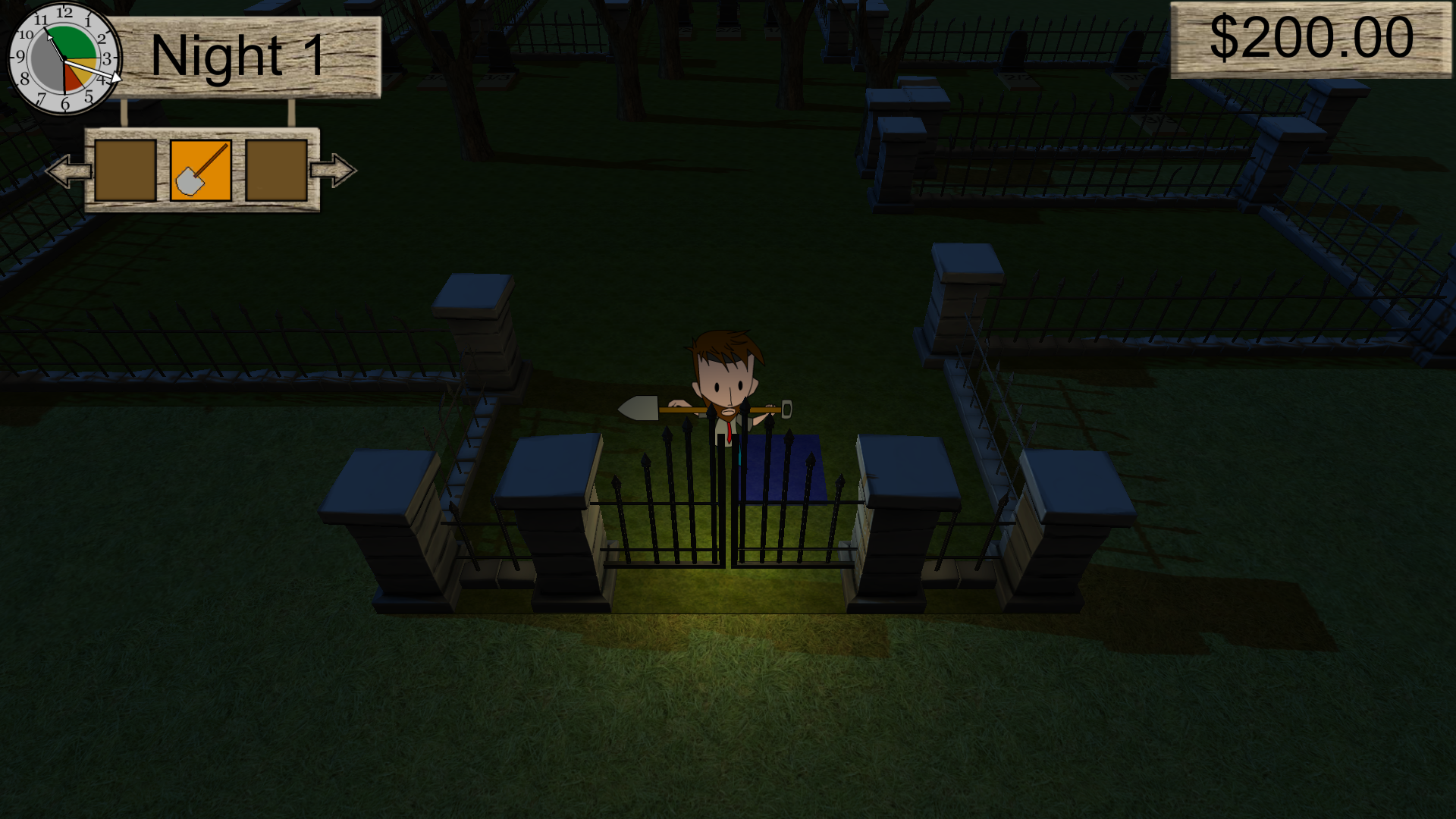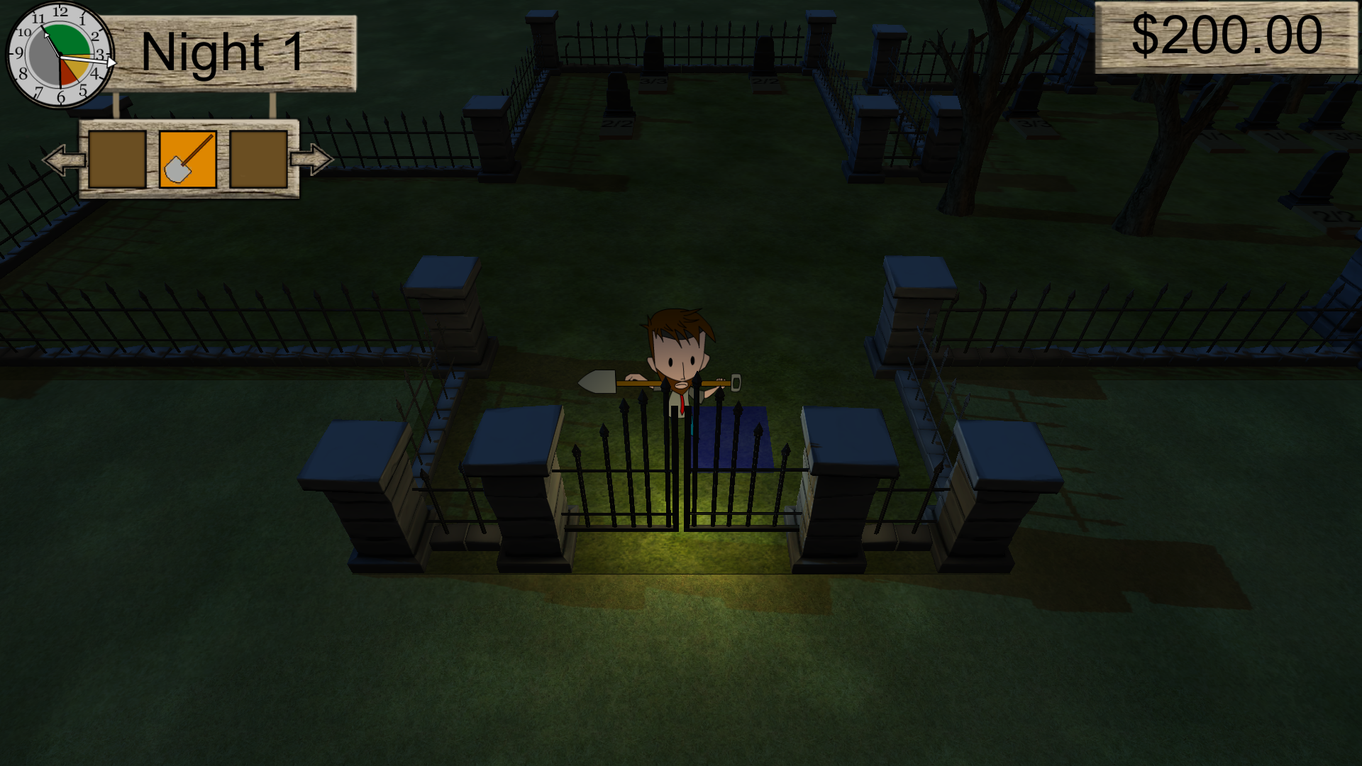This was just something I threw together quickly so it does not look incredibly good right now. I plan on improving the fog’s look significantly in one of two ways. The first would be the best option for performance, and it would be to just separate the fog into a transparent plane a foot or so above the ground. This way geometry like the graves and lower part of the player would be occluded by it. The second approach would be exponential falloff height-based fog. This would be a lot more performant if we were using the deferred renderer, but it can still be done in forward rendering. This would give a much more continuous-looking fog effect. If the performance is there I could also trace through the fog volume and accumulate its density along with checking for any point lights in range. This would give a volumetric fog effect where the fog would light up when lights such as the one attacked to the player get closer.